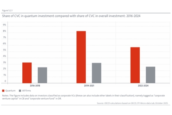 Established companies are already taking direct stakes in quantum companies. Corporate venture capital (CVC) accounted for as much as 8% of quantum investment in the 2019–2021 period, more than double the CVC share across all industries (see Fig. 5.2.1).
